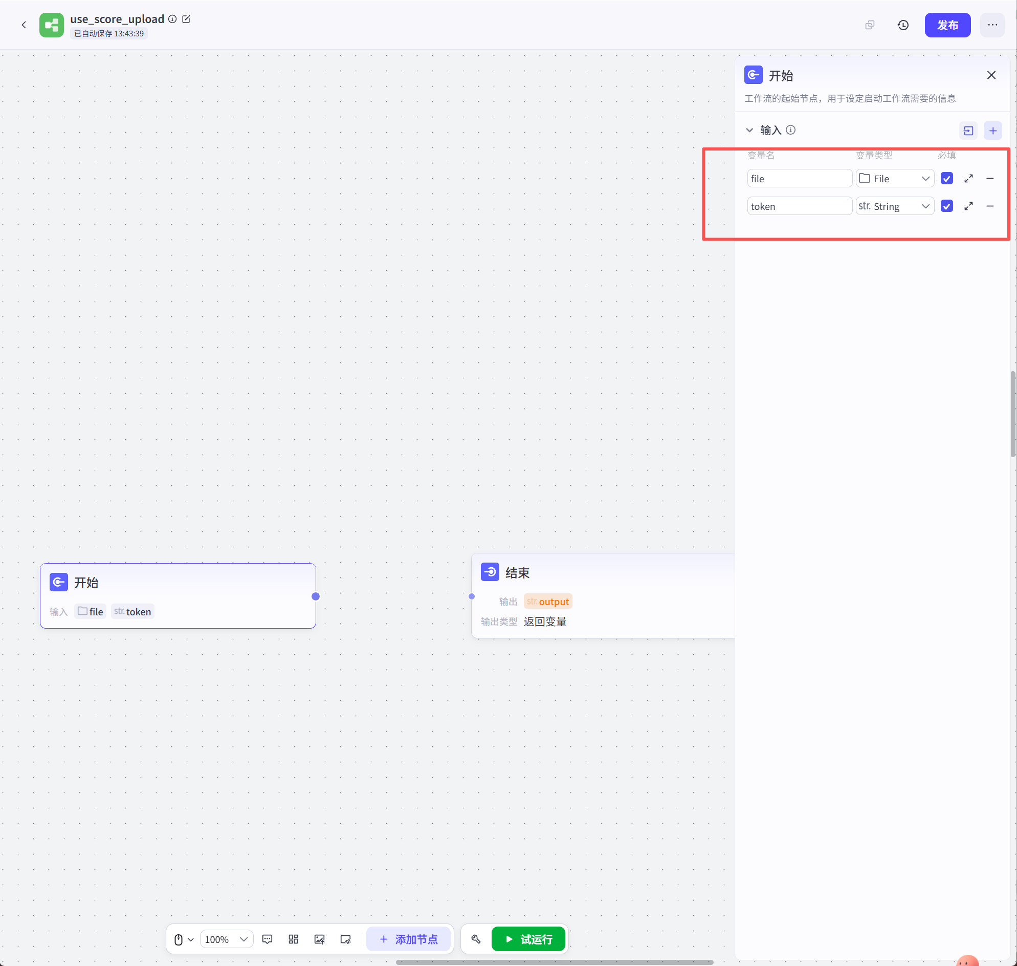 上传完成后,添加输出节点,把结果输出: