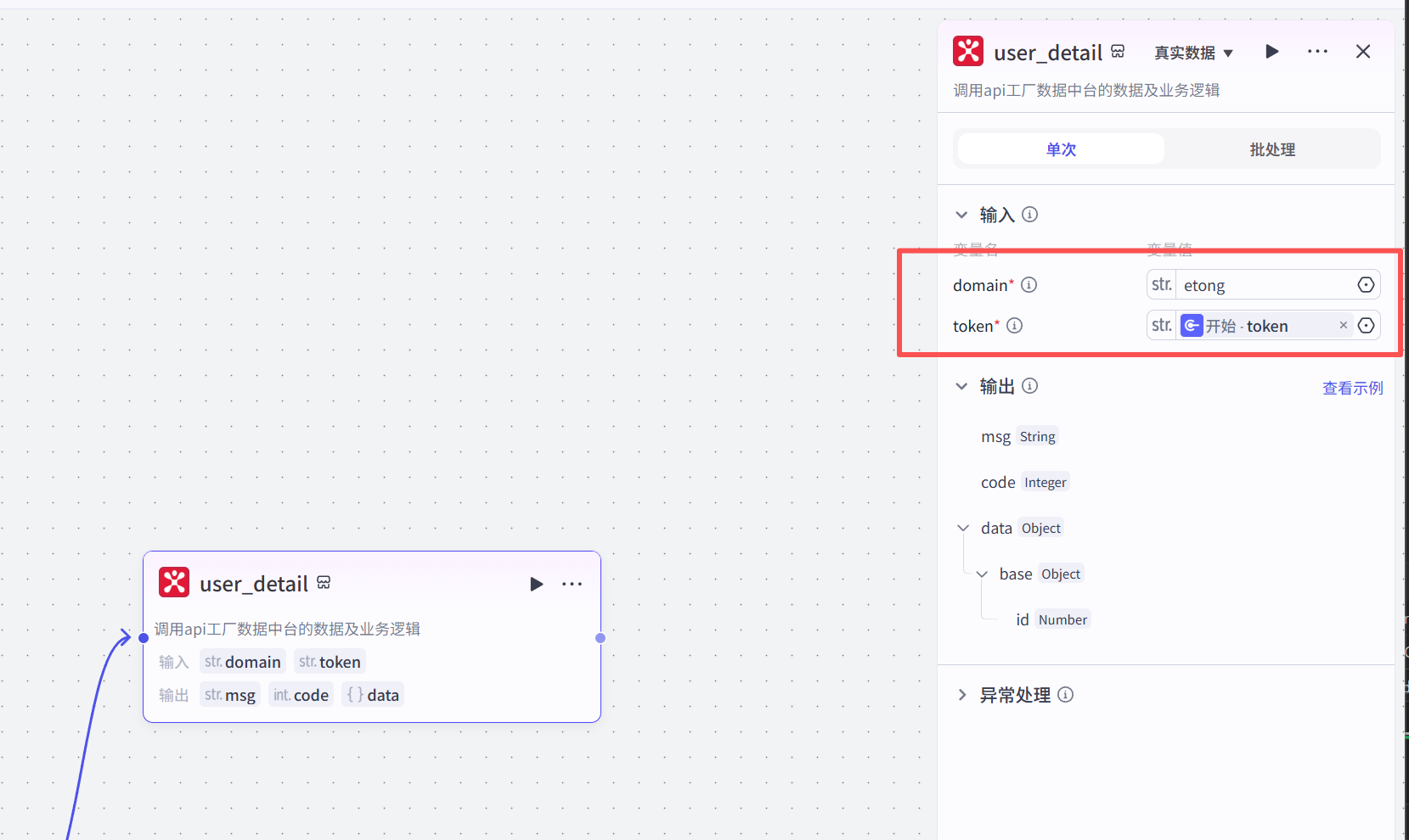 2. token ,这里直接从上一步的开始节点里面直接引用这个参数过来