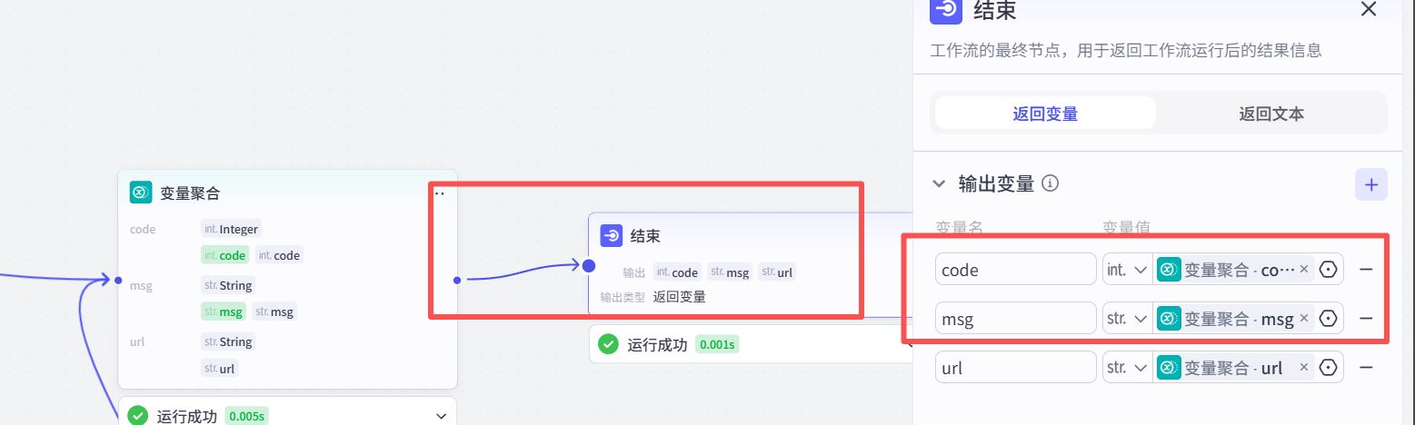 code,msg,url ,直接引用变量聚合节点的返回值,返回结果
