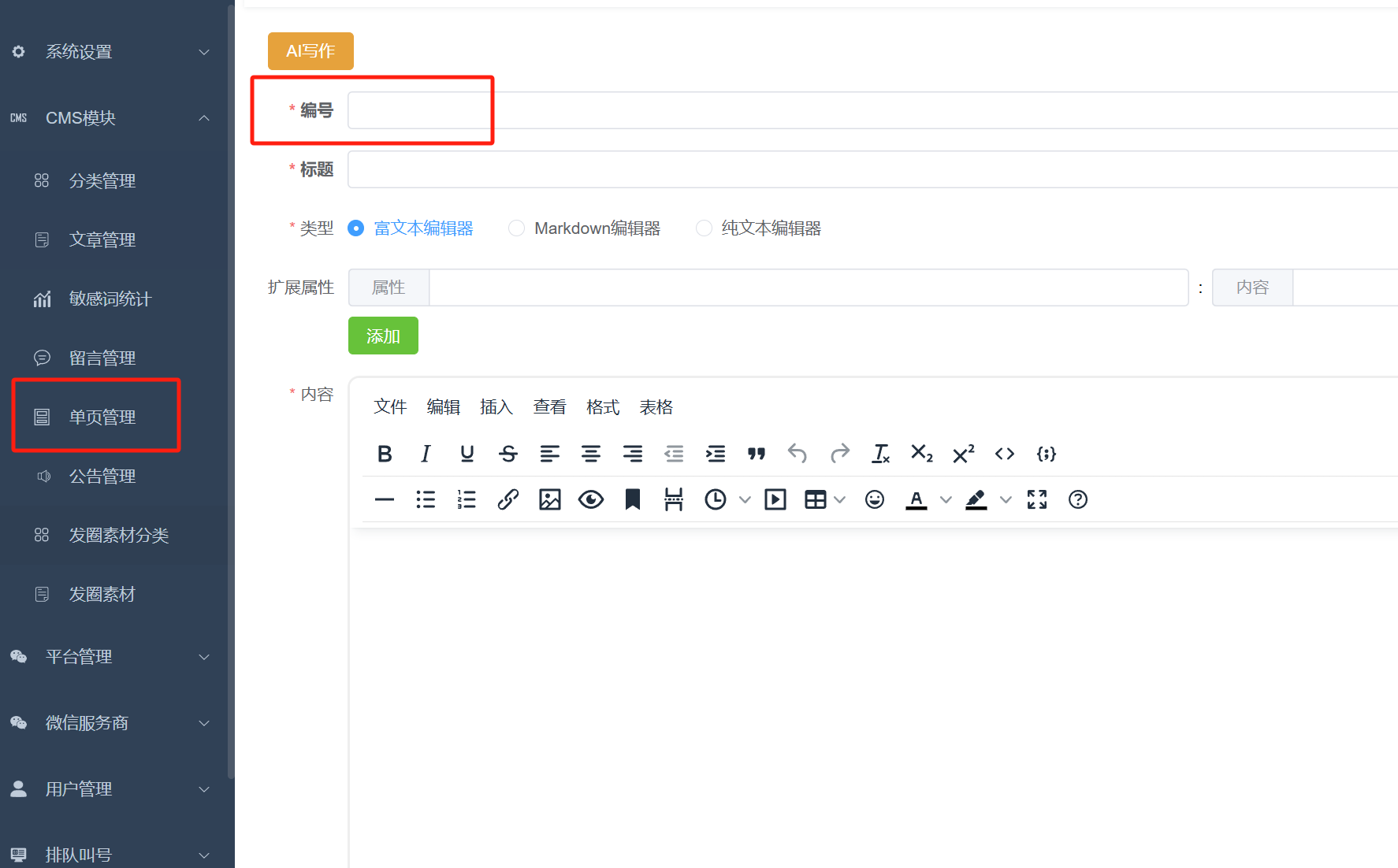 把参数的内容维护到“单页管理”里面,编号随意取,假如: abcd1234